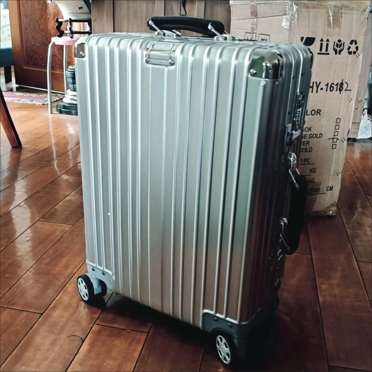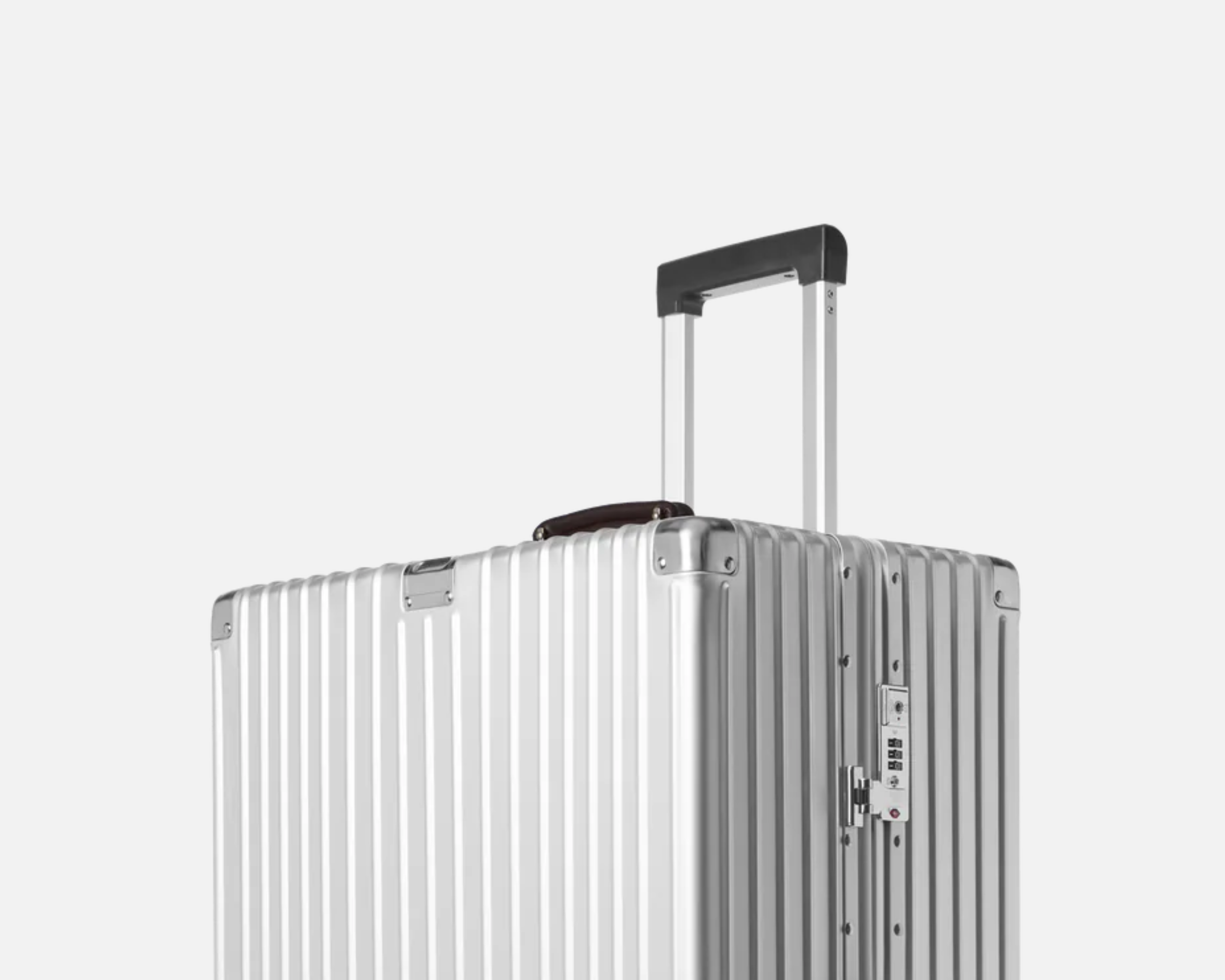 An elegant piece of luggage that combines classic design with technical sophistication. The riveted, high-gloss corners, clean lines, and distinctive aluminum surface make it instantly recognizable as a Langston & Keene.